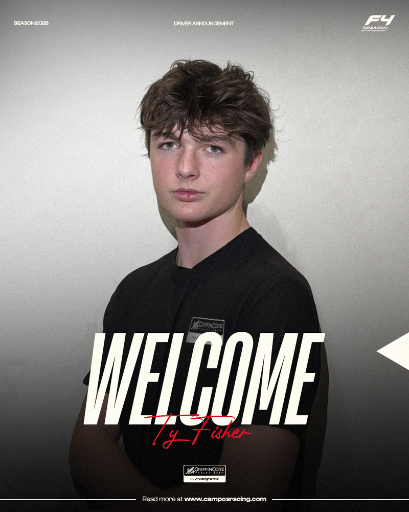 Griffin Core by Campos is pleased to announce the addition of Ty Fisher to its driver line-up for the 2026 F4 Spain season. Fisher becomes the fifth confirmed name within the Alzira-based structure, following Vivek Kanthan — who will also compete under the Griffin Core by Campos banner — and Jacob Micallef, Luna Fluxá and Daniel Kelleher, all three racing with Campos Racing.