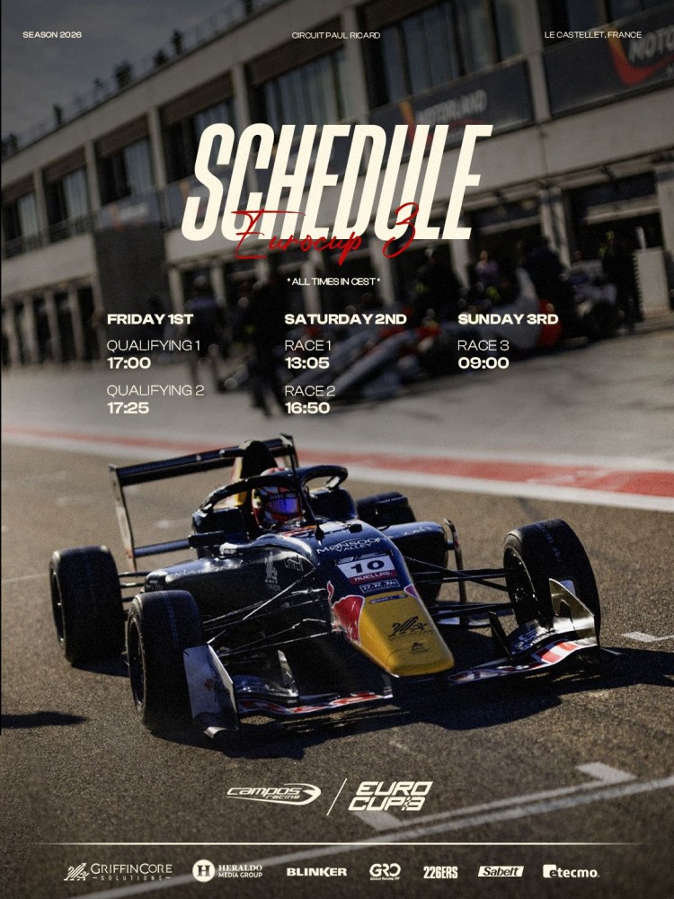 Adrián Campos (Team Principal de Campos Racing): “Estamos orgullosos de comenzar este cuarto año de Eurocup-3, que además supone un paso adelante en términos competitivos gracias al nuevo monoplaza Dallara 326-Toyota. Nuestros pilotos rindieron a un gran nivel en las Winter Series y pudimos extraer bastante información de esas carreras. Desde entonces, hemos estado trabajando en nuestra sede para terminar de definir este inicio de campeonato. Contamos con cuatro pilotos de una edad media muy joven, pero de indudable talento y capacidad para lograr los objetivos más ambiciosos en este 2026. Trataremos de salir de Paul Ricard con el mayor botín de puntos en el bolsillo.”