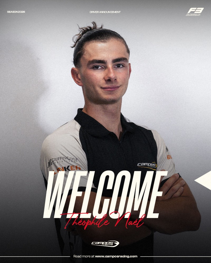 Campos Racing se enorgullece de poder anunciar el fichaje de Théophile Naël para disputar la próxima campaña de FIA Formula 3 al volante de uno de sus monoplazas. Naël supone una valiosa confirmación por parte de la escudería de Alzira, que afrontará el 2026 con el objetivo de defender el título por equipos logado en este 2025. Sin duda, un nuevo hito en la ya larga y exitosa trayectoria de veintisiete años en el automovilismo mundial.