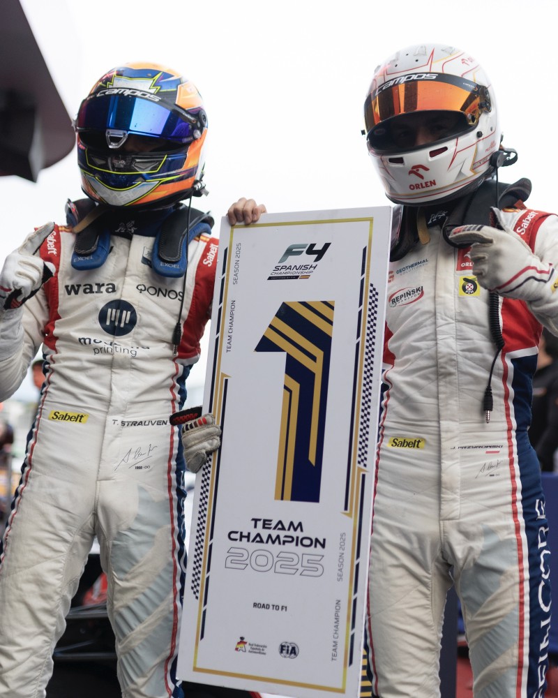 Los pronósticos se cumplieron y la temporada 2025 de F4 Spain deparó un segundo título para la escudería de Alzira. Si hace algunas semanas fue Thomas Strauven quien se coronó como campeón de la clasificación de pilotos, en la cita final del campeonato en el Circuit de Barcelona-Catalunya le tocó el turno a Griffin Core by Campos en la de equipos. Fue precisamente gracias al desempeño del propio piloto belga y de su compañero Jan Przyrowski, que coparon las dos primeras posiciones en la carrera sabatina, lo que decantó la balanza del lado de Griffin Core by Campos.
