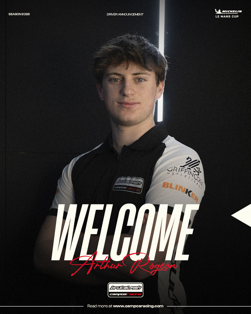 Brutal Fish by Campos Racing se complace en anunciar que Arthur Rogeon se incorpora a su programa de resistencia para disputar la temporada de Michelin Le Mans Cup en 2026. En una temporada en el que la estructura española debutará en las competiciones de resistencia con dos Ligier JS P325, Rogeon es el primero de los cuatro pilotos que conformarán las dos duplas al volante de sendos prototipos LMP3.