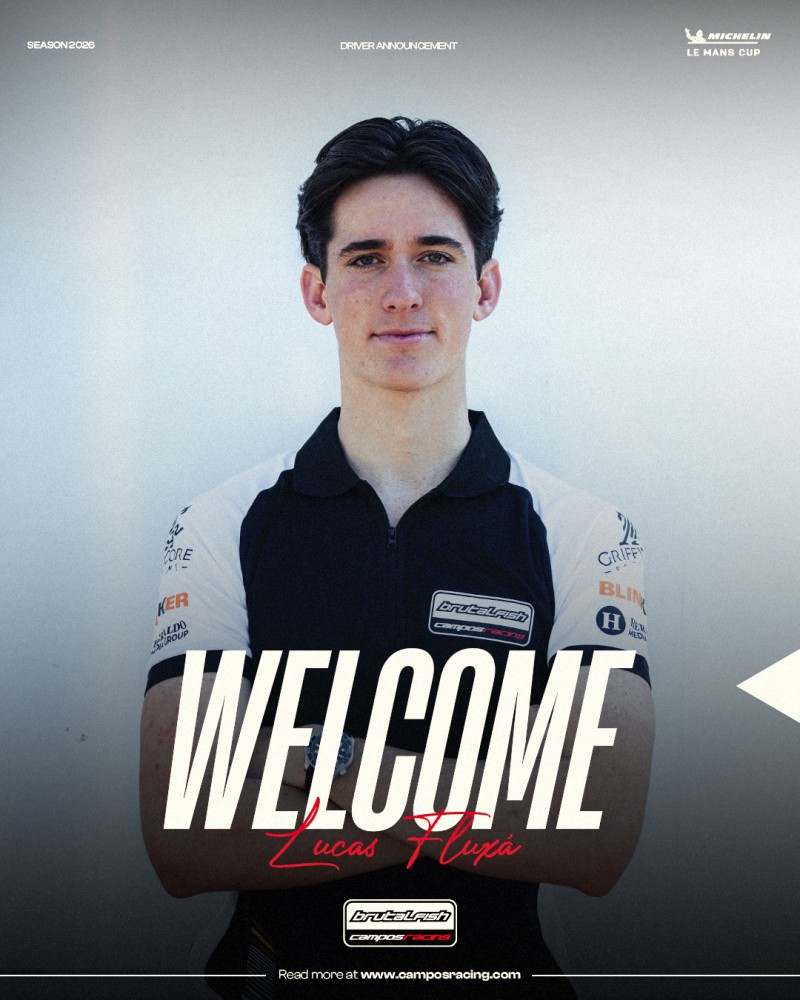 Brutal Fish by Campos Racing se enorgullece en poder anunciar que Lucas Fluxá se convierte en nuevo piloto del equipo para debutar en la inminente nueva campaña de Michelin Le Mans Cup. La que será la primera incursión de la escudería con sede en Alzira en resistencia contará con dos Ligier JS P325, de la categoría LMP3; uno de ellos pilotado por Fluxá y Matúš Ryba; y el otro por Arthur Rogeon y un cuarto piloto que se anunciará próximamente.