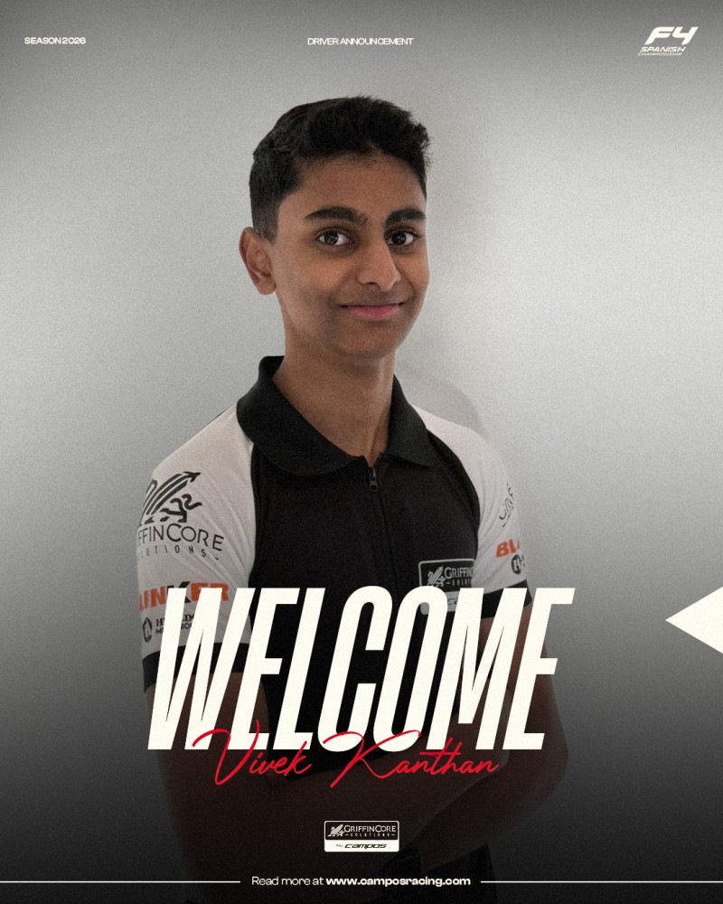 Campos Racing is proud to announce that Vivek Kanthan will remain on the F4 Spain grid for the upcoming campaign, competing under the banner of Griffin Core by Campos, the reigning champions in both the drivers’ and teams’ standings.