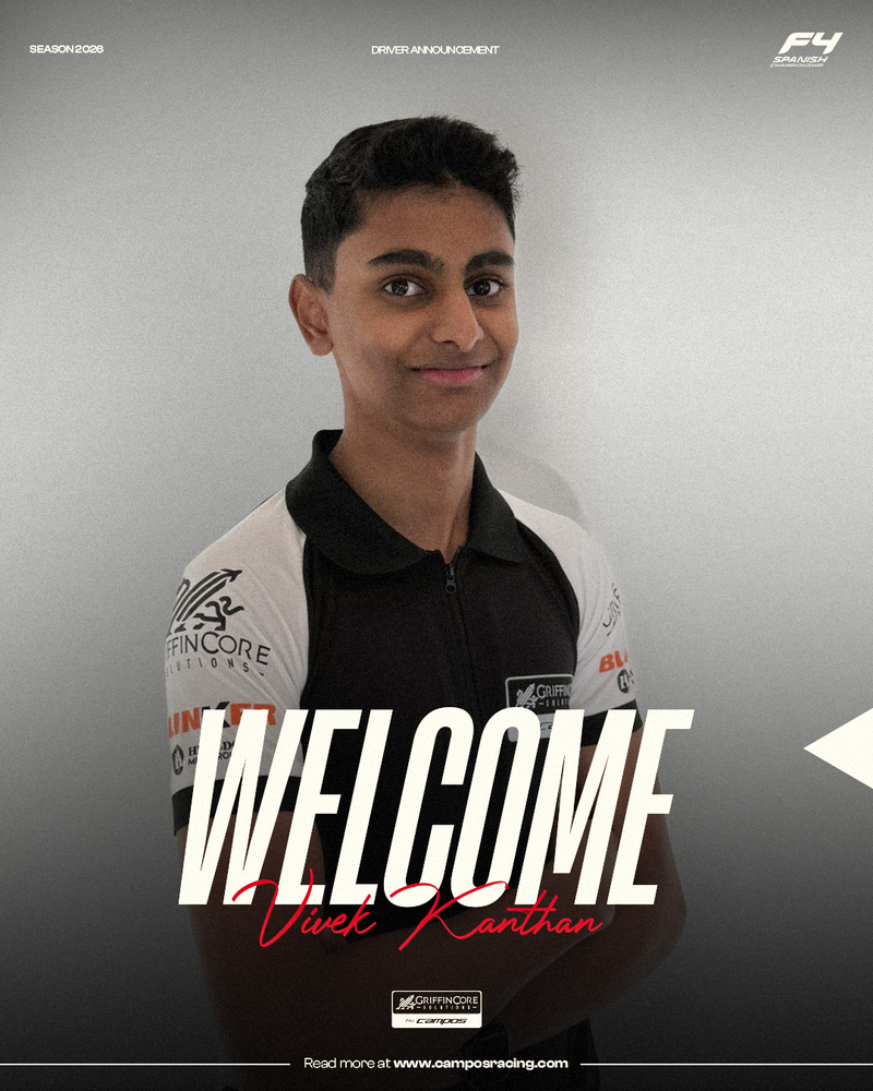 Vivek Kanthan (Griffin Core by Campos Driver in F4 Spain): “I am excited to continue with Campos Racing for the 2026 F4 Spain season. My rookie season with the team has been very promising, and now I want to build on all the experience gained to achieve even stronger results next year!”