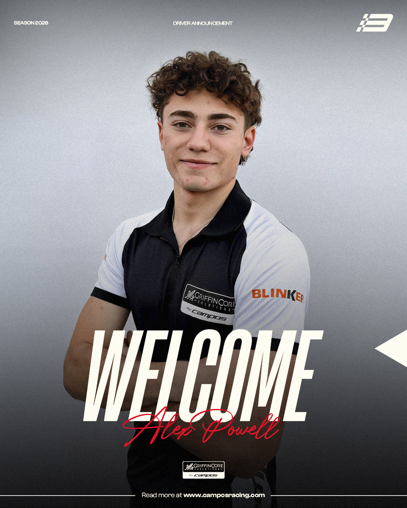 GriffinCore Campos Racing se complace en anunciar la incorporación de Alex Powell para disputar la temporada de 2026 de Eurocup-3 a los mandos de un Dallara 326-Toyota que lucirá los colores de la escudería de Alzira. Powell es el tercer nombre anunciado por GriffinCore Campos Racing tras los de Thomas Strauven y Patrick Heuzenroeder.