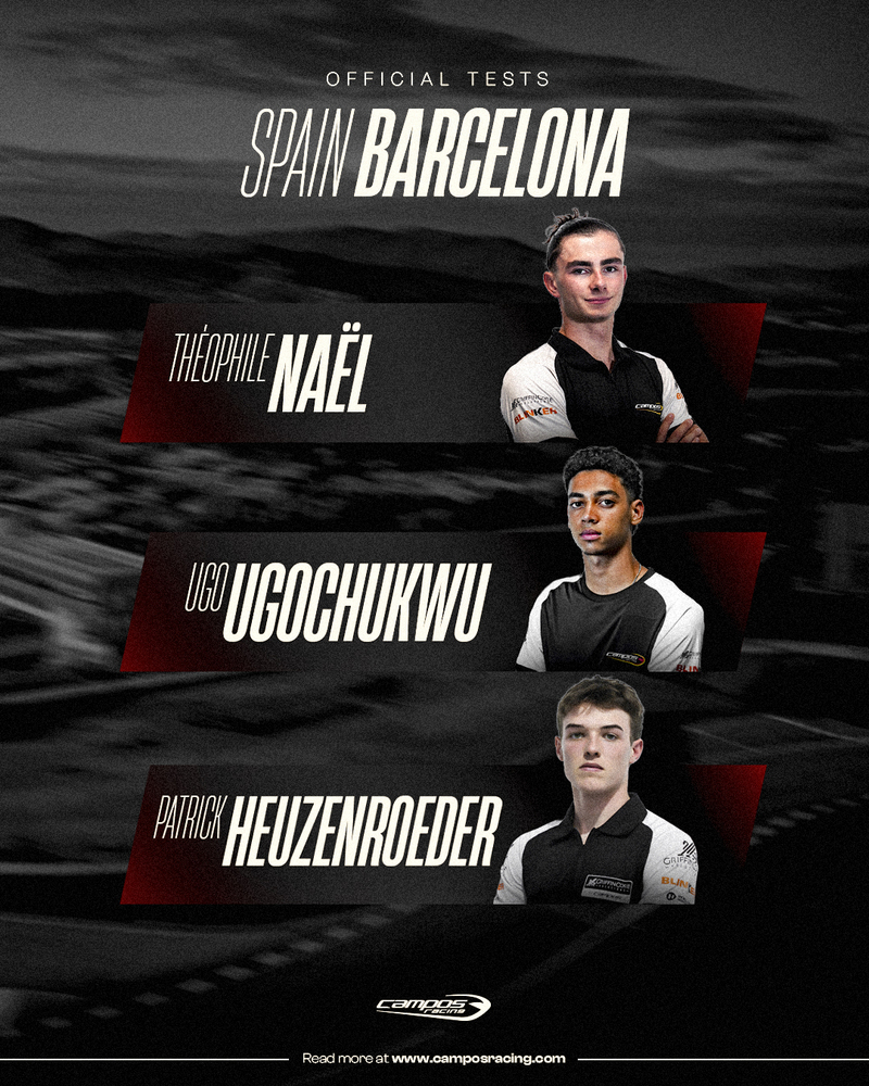 Campos Racing estará presente esta semana en los tres días de entrenamientos oficiales de pretemporada previstos por FIA Formula 3 en el Circuit de Barcelona-Catalunya. Los test, que comenzarán el martes y concluirán el jueves, contarán con la presencia en pista de los tres monoplazas de Campos Racing que, sin embargo, ha debido de introducir un cambio de última hora en su alineación de pilotos por causas de fuerza mayor.