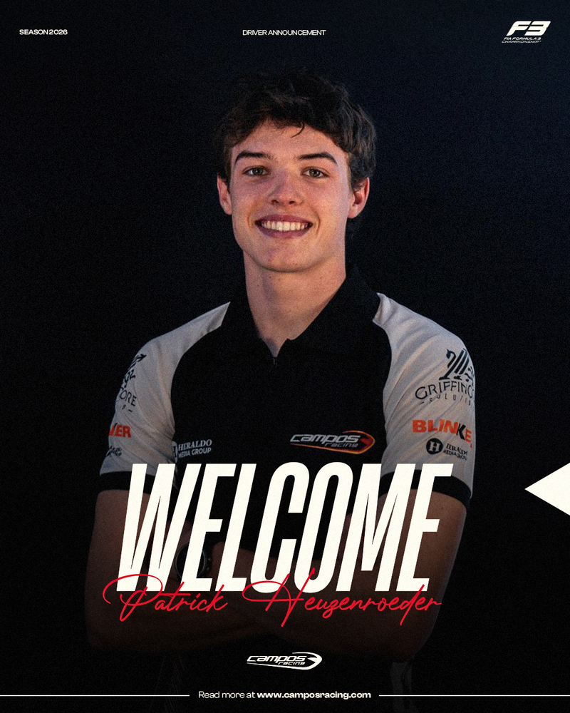 El plantel de pilotos de Campos Racing en la ronda inaugural de FIA Formula 3 presentará una novedad y es que Patrick Heuzenroeder se pondrá al volante del monoplaza de F3 de Campos Racing que luce el dorsal número 3. Ernesto Rivera, el mexicano que debía debutar como piloto en la categoría, prosigue su periodo de recuperación tras la lesión vertebral sufrida durante la disputa de la última prueba de Formula Regional Oceania Trophy en Nueva Zelanda.