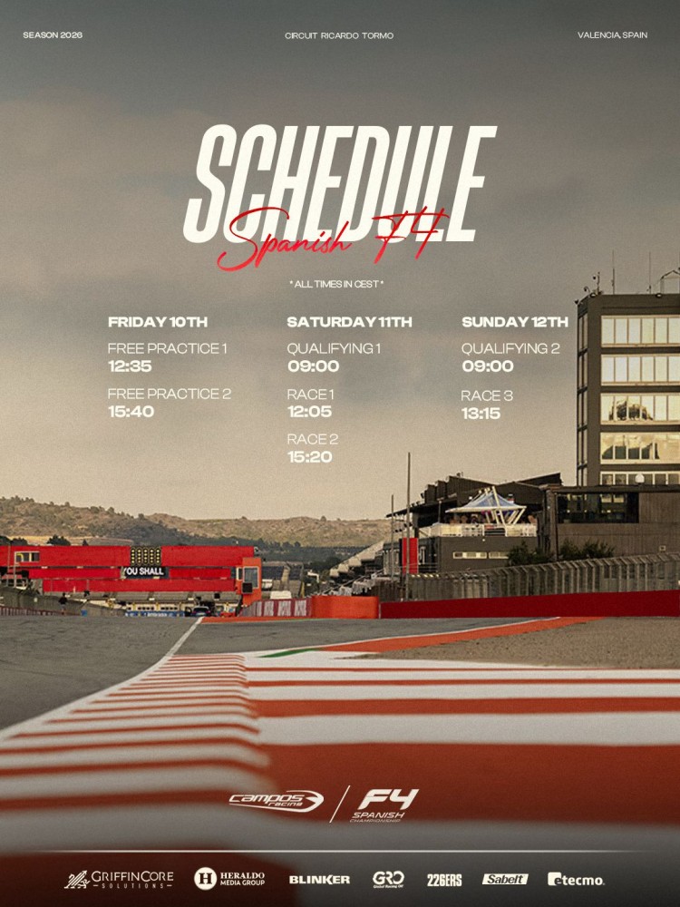 La temporada 2026 de F4 Spain se pone en marcha este mismo de fin de semana, haciéndolo además en la prueba de casa de la escudería. Dicho escenario no es otro que el Circuit Ricardo Tormo de Cheste y próximo a la sede del equipo en Alzira. Por delante restan siete fines de semana plenos de gasolina, emoción a raudales y hambre de victoria. Tras Valencia, el campeonato visitará Portimão (6-7 de junio), Alcañiz (20-21 de junio), un circuito aún por determinar (8-9 de agosto), Jerez (26-27 de septiembre), Los Arcos (10-11 de octubre) y Barcelona (7-8 de noviembre).