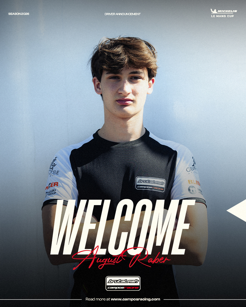 Brutal Fish by Campos Racing se complace en poder anunciar que August Raber se convierte en nuevo piloto del equipo para defender sus colores en la inminente campaña 2026 de Michelin Le Mans Cup, que supondrá el debut del equipo en resistencia. Raber compartirá las labores de pilotaje del Ligier JS P325 que lucirá el dorsal 12 con el francés Arthur Rogeon. El otro Ligier, que portará el dorsal 19, estará confiado a Lucas Fluxá y Matúš Ryba.